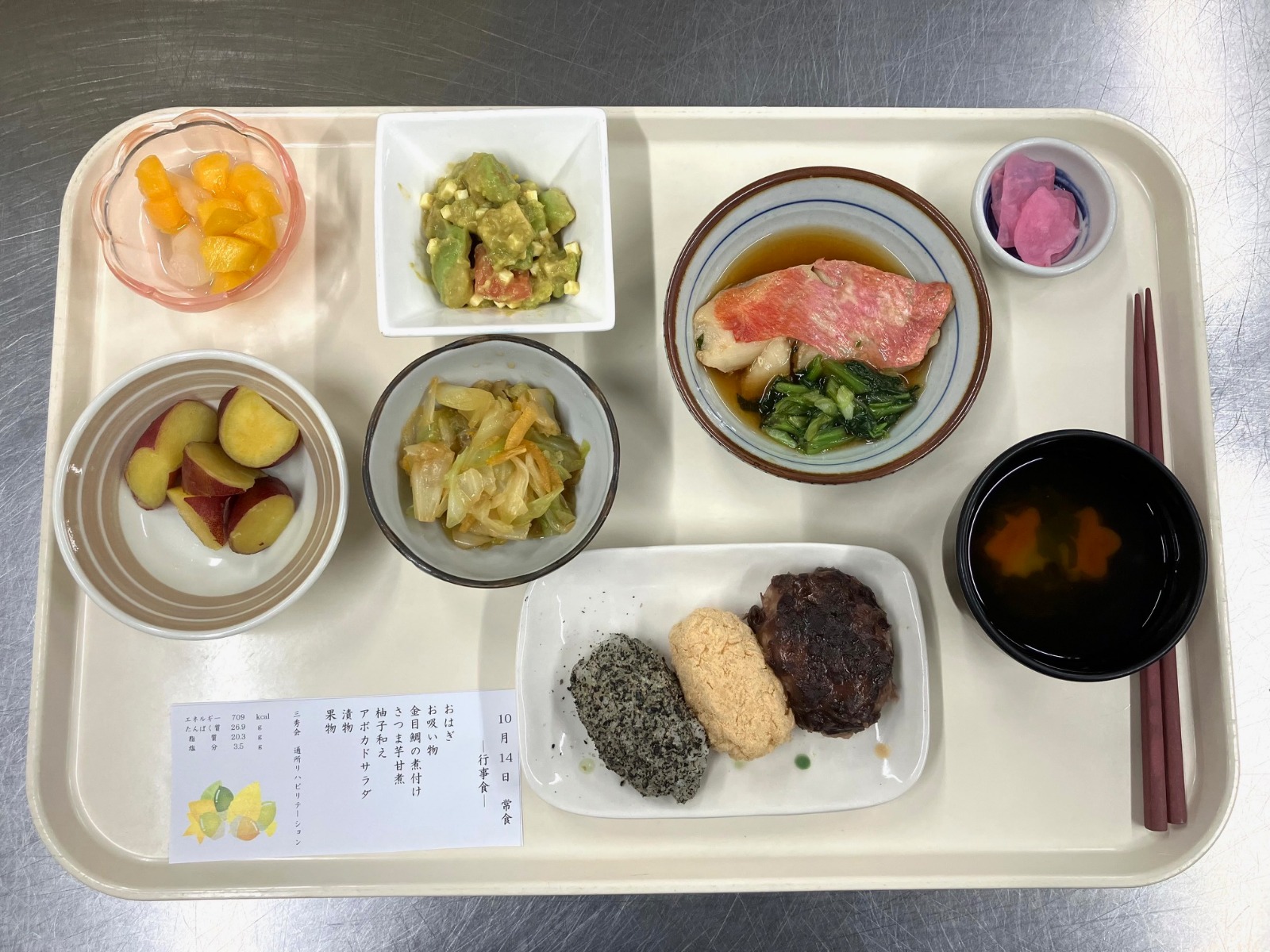 今回は、10月14日(火)に病院で提供された行事食「秋の行事食」についてご紹介いたします。