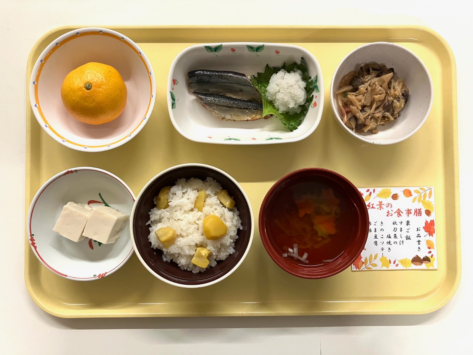 今回は、11月13日(木)に病院で提供された行事食「紅葉のお食事膳」についてご紹介いたします。